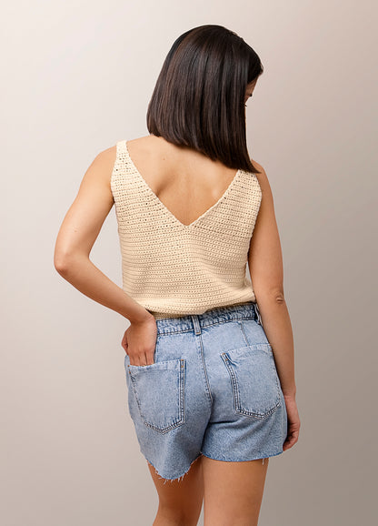 Voici un kit de crochet facile. Imaginez simplement avoir un haut fabriqué de vos propres mains ! Avec notre intemporel Cadenza Top, vous pourrez créer tellement de looks différents ! Portez-le avec tout, des vêtements décontractés aux jeans.