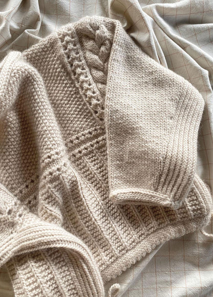 Le Elm Sweater d'Augustins est un projet de tricot de niveau avancé. Ce projet est travaillé en une seule pièce du haut vers le bas, en allers-retours et en rond. Vous commencerez par tricoter le corps puis vous reprendrez des mailles autour de l'emmanchure pour tricoter les manches. Ce design présente une combinaison de torsades, de dentelle et de points texturés, de quoi en faire un design unique !
