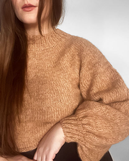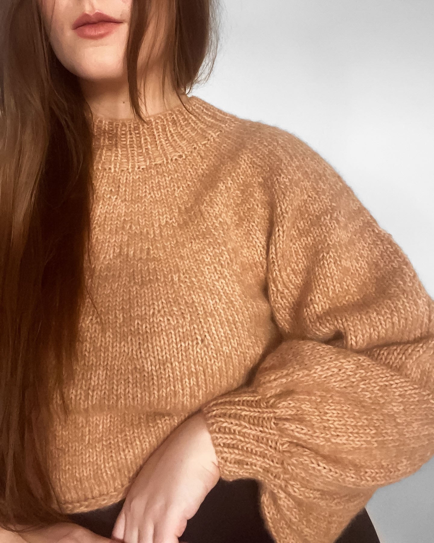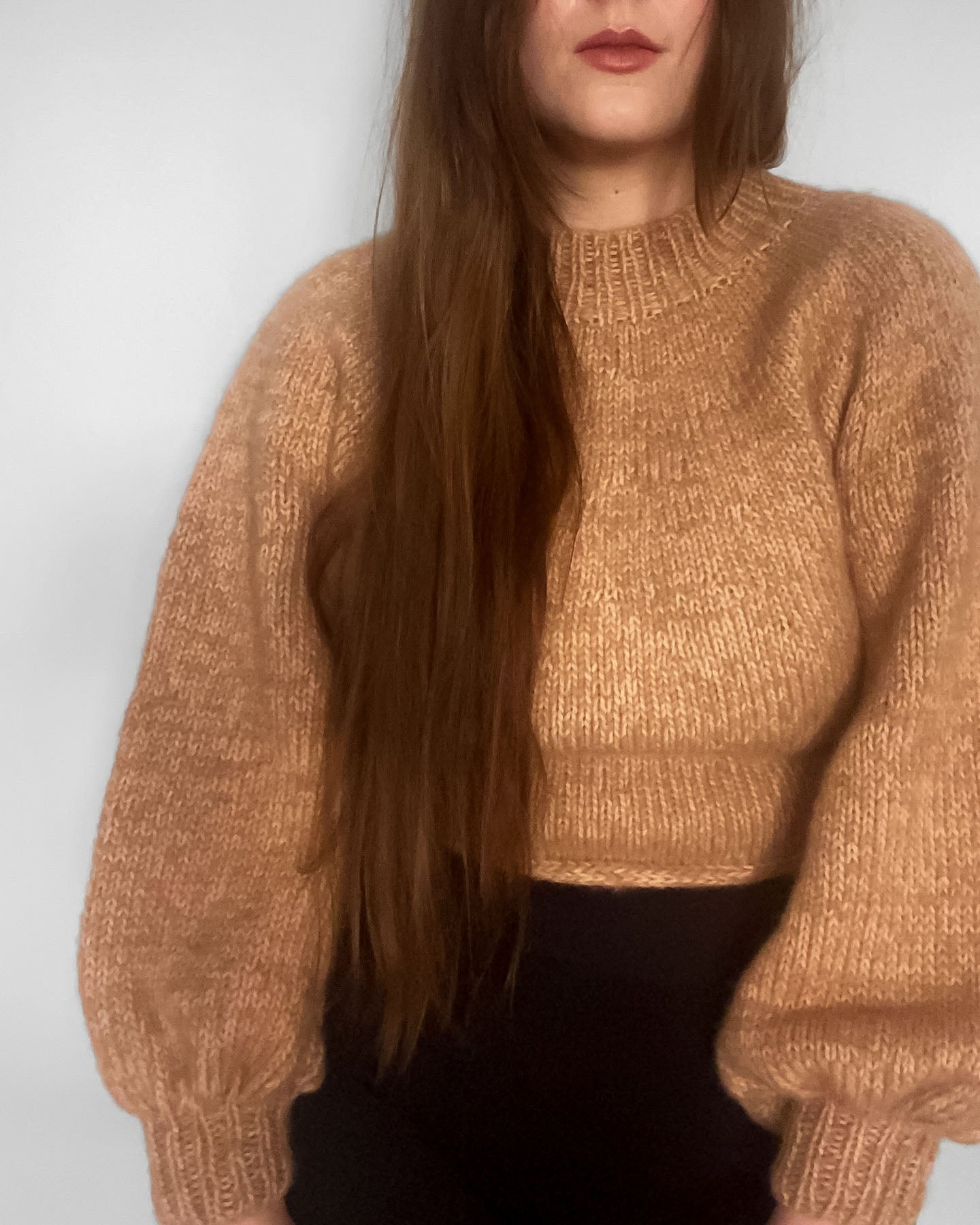 The Lilac Blouse designed by Augustins This project is worked triple stranded with two fibers (Baby Alpaca and Touch Me Mohair), in one piece from the top down in the round. You'll begin by knitting the body and the sleeves together at the neck. At the armholes, the work is separated into three parts: the body and the sleeves, which are worked separately in the round. You will finish your sweater by adding an i-cord tie at the bottom of the body. Enjoy knitting a very special project with romantic balloon sleeves and a fluffy texture.