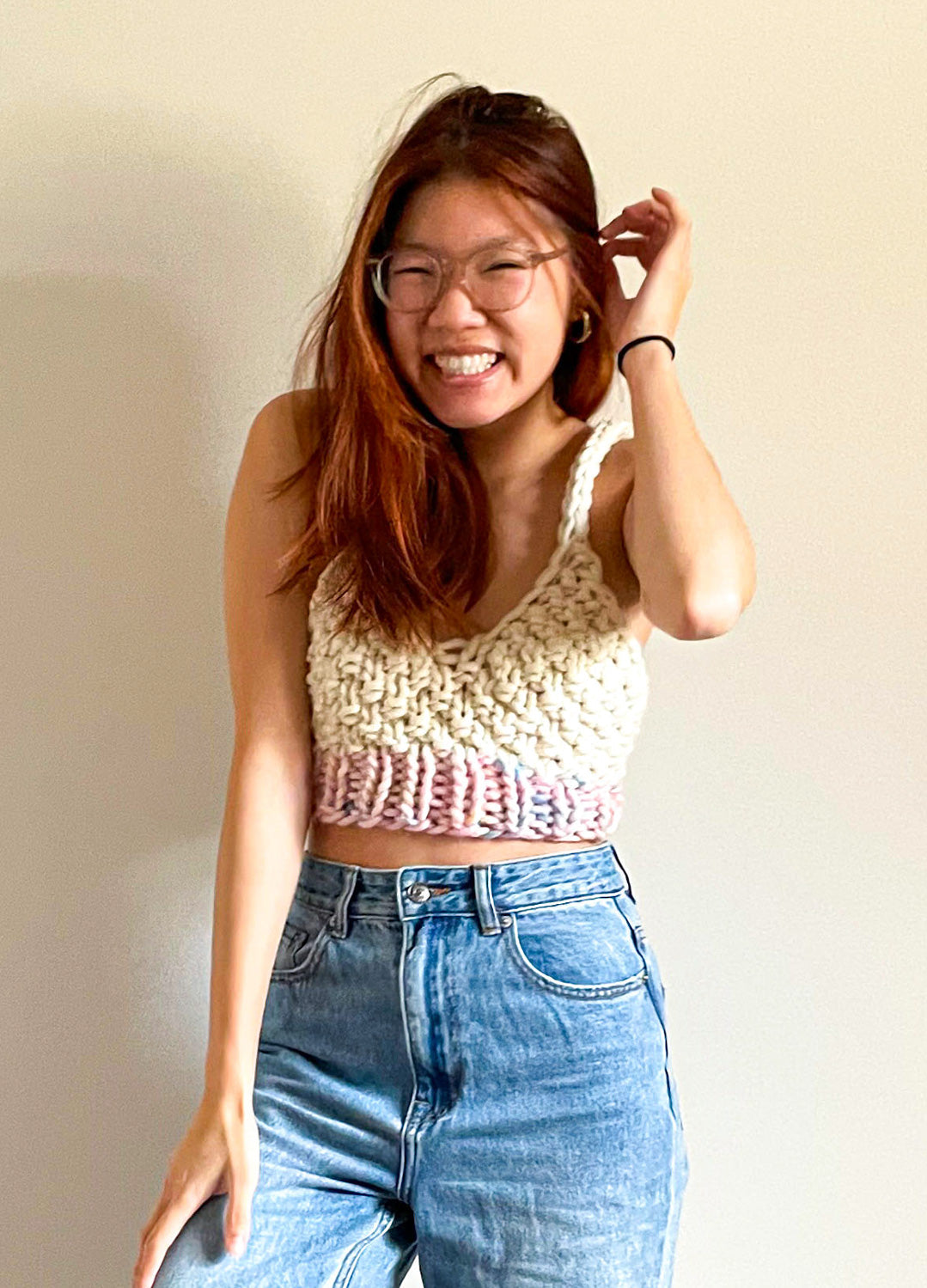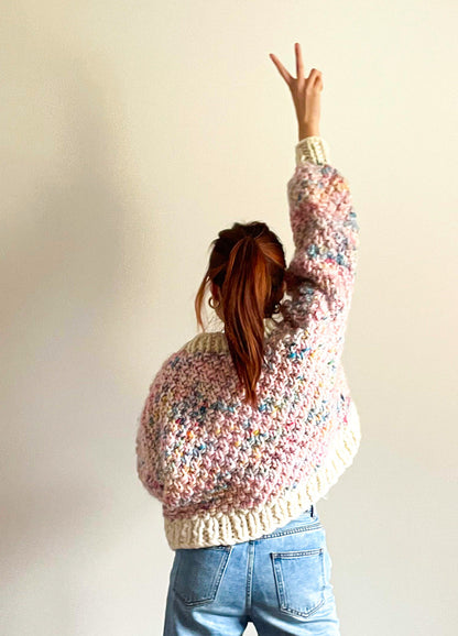 Le Ottawa Cardigan & Bralette Set de Beatific Brenda est un projet de tricot de niveau intermédiaire. Ce tricot épais est travaillé à plat et en rond, donnant un ensemble assorti très texturé et unique ! Ce projet est réalisé séparément en 2 pièces, le cardigan et le haut, et en deux couleurs (A et B). Vous commencerez le cardigan en travaillant le corps puis en relevant des mailles autour des emmanchures pour faire les manches, qui sont travaillées en rond. Enfin, vous relèverez des mailles autour de l'ouverture du cardigan pour faire le bord. Finalement, vous tricoterez le haut en une seule pièce en rond.