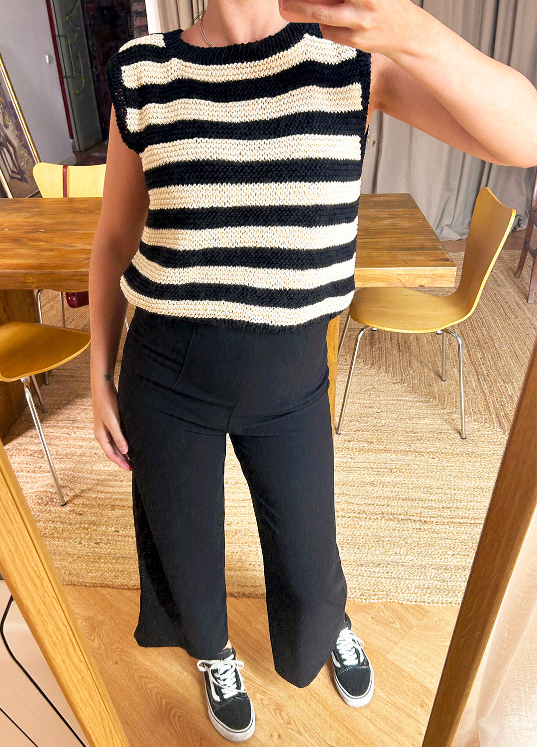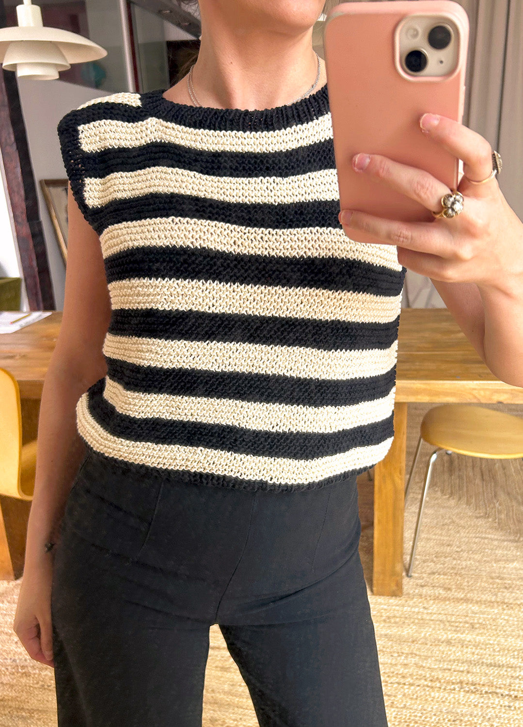 Il s'agit d'un kit facile à tricoter. Ce kit est tricoté en deux couleurs (A et B) et deux pièces qui sont ensuite cousues ensemble : le dos et le devant. Ce haut délicat et doux est très spécial. Portez-le avec une jupe midi ou un jean !