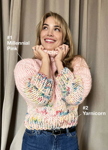 Ce kit facile est parfait pour la saison hivernale ! Les bordures côtelées et le col roulé de notre Sprinkle Lime Sweater le rendent encore plus douillet. Tricoté à plat, ce pull deviendra facilement votre pull préféré. Portez-le avec un pantalon large ajusté ou votre jean préféré, sourire garanti !