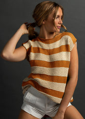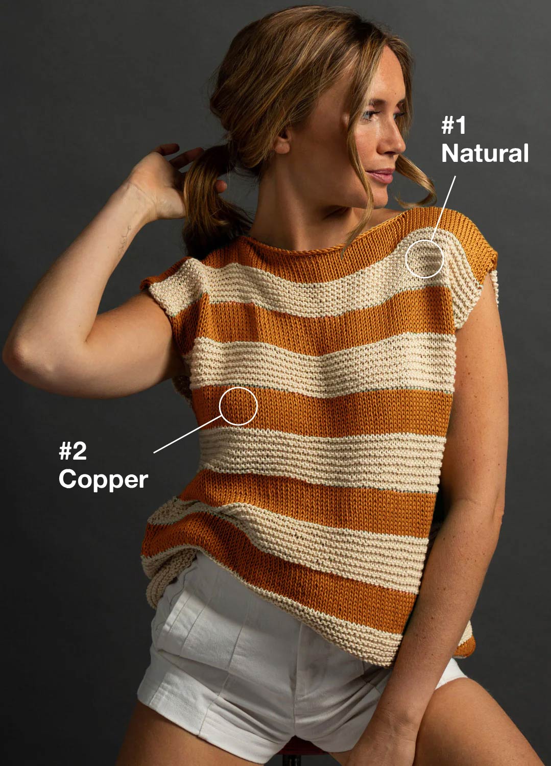 Le tee-shirt Venise est un Débutant Tricot Projet Mais la combinaison de points et de couleurs vous fera ressembler à un Tricot pro! Ce Projet est tricoté en deux couleurs (A et B) et en deux morceaux qui sont ensuite cousus